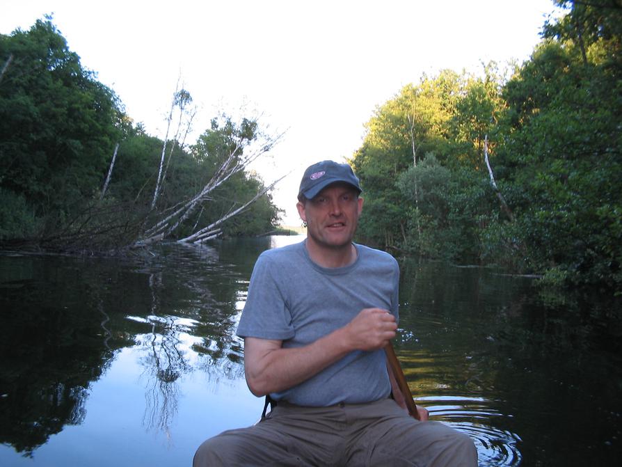Hinter dem Caarpsee paddeln wir unser Kanu noch ein ganzes Stück in den Bolter Kanal hinein, der ebenfalls eine sehr wilde Umgebung besitzt. Hier ist es wieder ganz windstill, und obwohl wir langsam und voller Genuss paddeln, ist die Alte Bolter Schleuse bald erreicht. Dort drehen wir um, jetzt paddeln wir flott, vergnügt und immer noch frisch die 3,5 km bei weniger Wind zurück zum Leppinsee. Die Kraft zu dieser doch noch sehr ausgedehnten Abendtour nehmen wir aus der Begeisterung, endlich wieder einmal eine Woche gemeinsam paddeln gehen zu können und noch dazu in einer so angenehmen Umgebung.