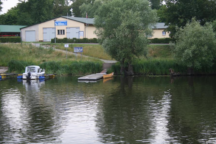 Ich paddle weiter zum WWR, bald sehe ich einige Motorboote an einem Schwimmsteg liegen und mache dort ebenfalls fest. Mit Kennerblick stelle ich fest, dass ich es hier mit einer durchdachten, gepflegten Anlage zu tun habe. Ein Schild verrät mir, dass sie von einem Wassersportverein betrieben wird. Es gibt ein Sanitärhaus mit Dusche und eine gut gestaltete Schutzhütte mit vielen Sitzplätzen. Ein großes Display gibt Auskunft über die Landschaft des "Naturpark Westhavelland" mit ihren Eigenheiten sowie den wichtigsten Kontaktadressen. Ich freue mich, dass es auch hier gelungen ist, einen gut ausgestatteten WWR zu errichten und für die Erhaltung zu sorgen. Dann lege ich wieder ab und paddle in Richtung Havelberg.