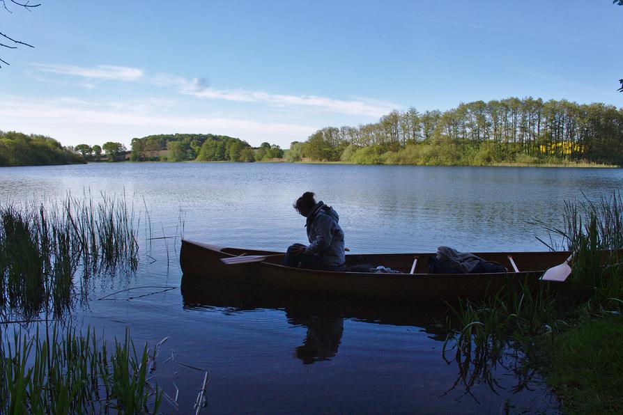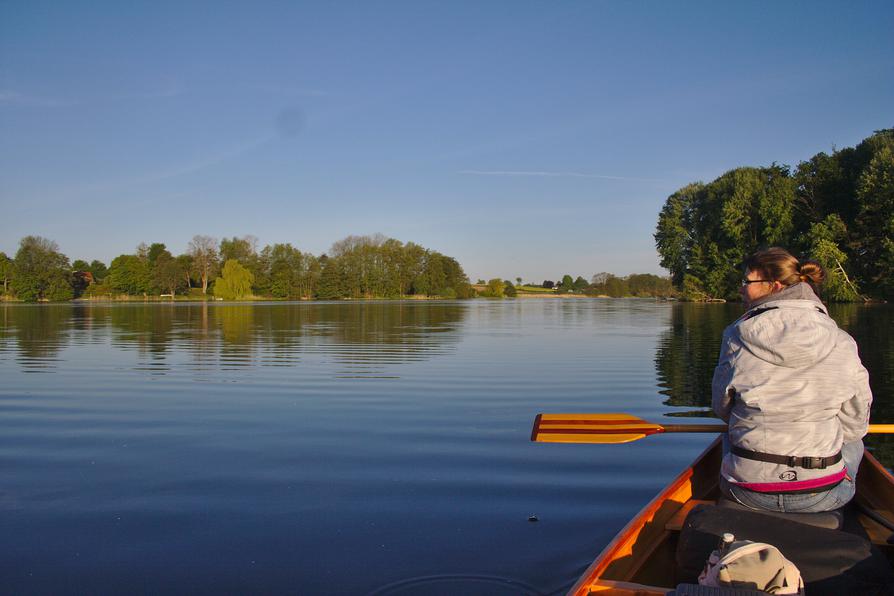 Am Freitagmorgen unternehme ich zusammen mit einer netten Bekannten eine Kanutour. Wir sitzen bereits um 6:00 Uhr im Kanu und paddeln hinaus auf den Kleinen Plöner See. Die Luft ist nur etwa 8° kühl.