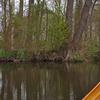 Ich sitze noch ein wenig windgeschützt unter dem Vordach des Schleusenmeisterhauses, bevor ich wieder ins Kanu steige und zur Einsetzstelle zurück paddle. An vielen Stellen blühen Sumpfdotterblumen, und ich entdecke manches schwimmende Nest eines Blässhuhns. Vor allem am linken Ufer kann ich jetzt in der Vorvegetationszeit das grün leuchtende Moos bewundern, das über die Jahre die knorrigen, meist liegenden unteren Stämme der Weiden bedeckt. Dazwischen wachsen bereits Giersch, Brennnessel und Mädesüß sowie einige Gräser.