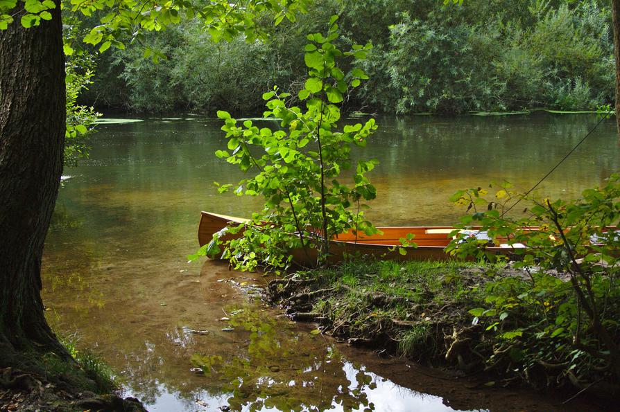 Am heutigen Donnerstag Nachmittag regnet es mal nicht, im Gegensatz zu vorgestern, gestern und heute vormittag. Das nutze ich zu einem kleinen Kanu-Ausflug in der Nähe aus. Allerdings ist es recht windig, so dass ich ein wenig mehr Ballast mitnehme als normalerweise.
