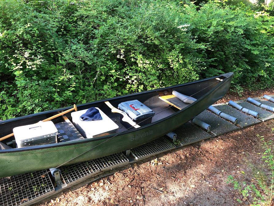 Kanu mitten auf der Rollenbahn: bei der Umsetzstelle Ölmühle